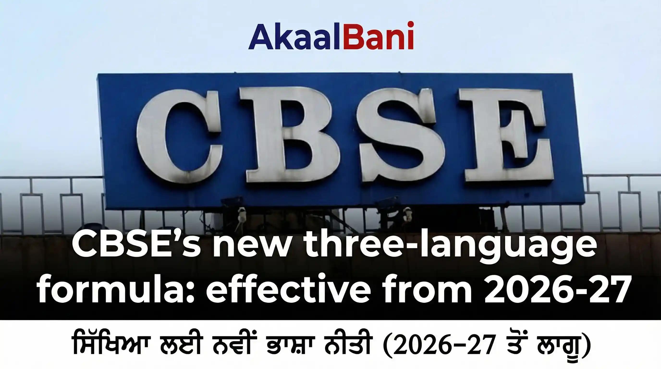 - 1ਸੀਬੀਐਸਈ ਦਾ ਤਿੰਨ-ਭਾਸ਼ਾਈ ਫਾਰਮੂਲਾ 2026-27 ਤੋਂ ਛੇਵੀਂ ਜਮਾਤ ਲਈ ਲਾਗੂ ਹੋਵੇਗਾ।